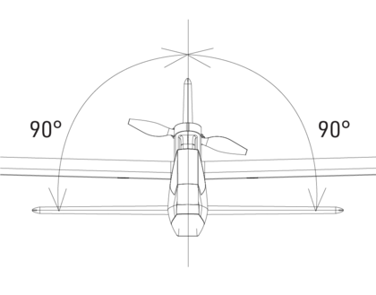 Ailerons control the bank angle. If you gently move the aileron stick to the left, your model will start to bank to the left as long as you are holding the stick. Now, if you return the aileron stick to the centre position (neutral), your model will maintain the bank. If you want to resume a straight flight, move the aileron stick in the opposite direction.