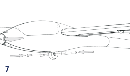 7. Insert the wheel into the yoke, attach the dummy undercarriage doors from both sides of the yoke and secure with two screws. (Fig. 7)