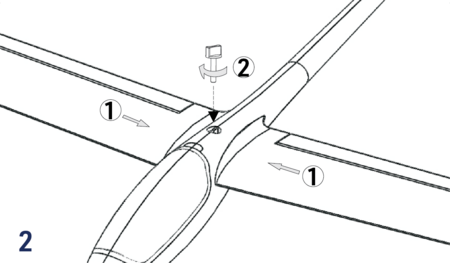 2. Insert the wing halves into the fuselage and secure with the M6 nylon bolt. (Fig. 2)