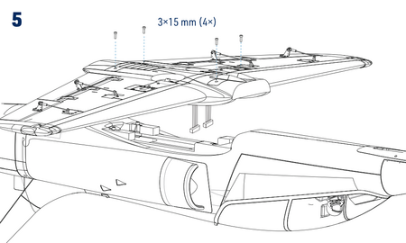 4. Secure the tail assembly to the fuselage using four 3×15 mm self-tapping screws. (Fig. 4)
