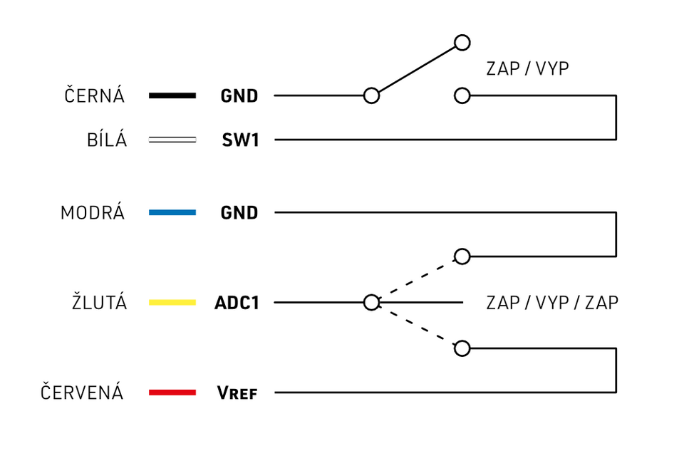 - Připájejte kabely páky ke konektoru podle schématu níže pomocí mikropáječky.