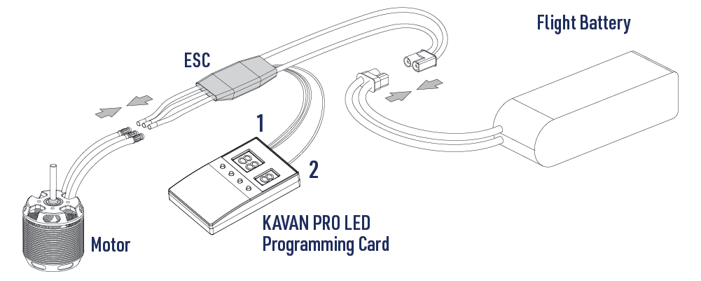 • Connect it to the KAVAN PRO LED programming card if you want to program the ESC.
