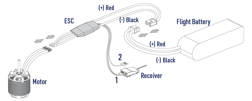 • Use only batteries that are supported by the ESC and ensure the correct polarity before connecting.