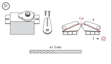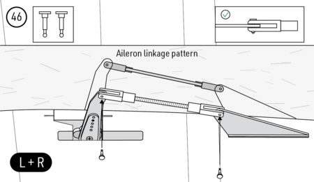 Aileron push rod 2 steel M2×40 mm screw 43, 44