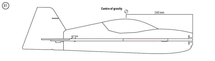 • Attach the flight pack to the side of the bottom part of the fuselage using a strip of hook-and-loop tape to get the correct position of the centre of gravity (CG) 260 mm, refer to Fig. 81. You can fine-tune the CG position later to suit your flying style.