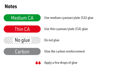 • Glue: medium (KAV56.9952) and thin (KAV56.9951) CA glue, accelerator for CA glue (KAV56.9958 / KAV56.9959), hot melt glue.