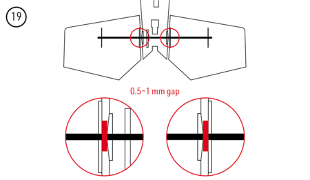 • Referring to the instruction manual of your radio carefully hook up the onboard electronics. The full-size patterns (pages 18–19) will help you to set the correct linkage length and control surface neutral position - refer to assembly steps 35–36, 46 and 58.
