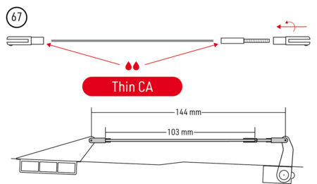 Rudder push rod 1 carbon Ø 1.8×125 mm 65