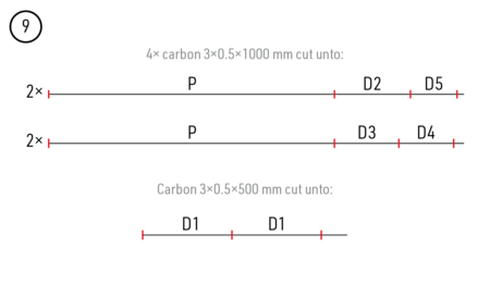 Fuselage reinforcement 4.5 carbon 3×0.5×1000 mm 8, 9