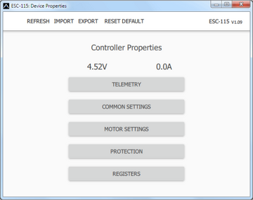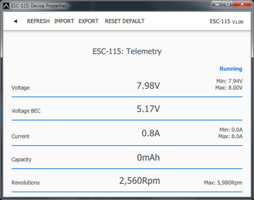 In the Common Setting menu, you can modify the BEC voltage very precisely in steps of 0.1 V. The controller contains a very powerful BEC which can deliver up to 15 A continuous current. However, in case of a high-power setup, sufficient cooling airflow must be provided. Connecting both Telemetry and Throttle cables to the receiver is recommended to provide high current throughput.