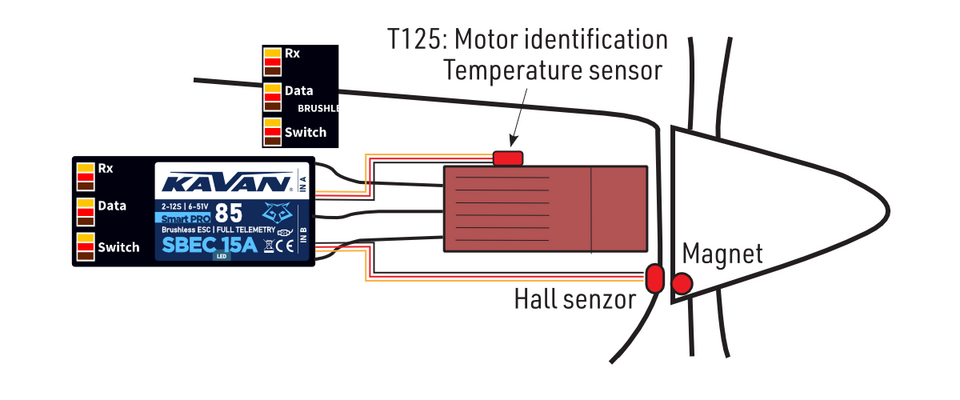 If you use an ESC with galvanic isolation (KAVAN Smart PRO 200/220), always turn on the ESC before the receiver. Otherwise, the telemetry functions may not work.