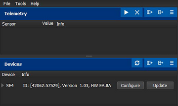 Firmware updates for the SE4 are transferred from a PC via the USB interface. The required programs and files are available at www.mavsense.com..