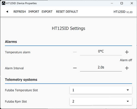 Futaba and Multiplex systems do not offer wireless device configuration. The telemetry transmission is possible with the following fixed sensor slots: Futaba S.Bus2 Multiplex MSB