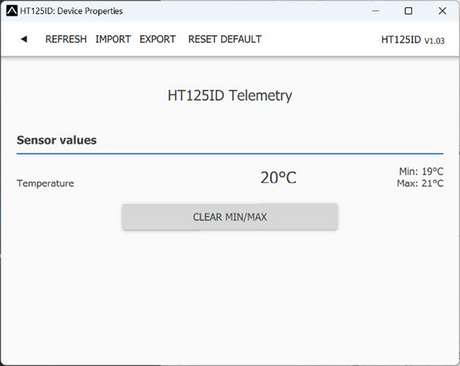 Connect the Temp125C to your PC using the USB interface. The MAV Manager will automatically detect the device. The device properties are available after pressing the “Configure” button.