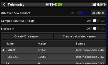 The telemetry data of the controller and receiver should already be displayed in the list below.