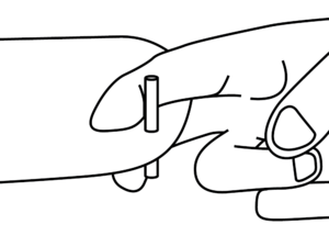 Your right index and middle fingers should be wrapped around the launch pin at the left wing tip. Your thumb is to be gently pressed against the leading edge of the wing. Stand with your left shoulder into the wind and the right wing tip pointing at ca 45° angle to the ground.