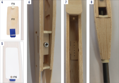 • Trial fit the parts of the fuselage - no glue yet! Sand as necessary to obtain a perfect fit. Be sure the tail boom F1 can be inserted easily but tightly into the openings in F10 and F8 formers.