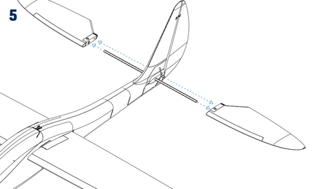 - Slide the all-moving tailplane halves onto the carbon tube joiner. (Fig. 5)