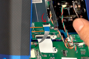 Remove the side rotary sliders and place them into the mounts on the front shell so they don’t get in the way during the replacement. Unplug the flex cable by unlocking it upwards/towards you.