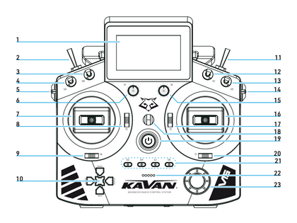 If you have any questions about the V15 transmitter and its operation, please contact the technical and service staff at KAVAN Europe s.r.o. by e-mail (info@kavanrc.com for general technical information, service@kavanrc.com for service) or by phone (+420 466 260 133 for general technical information, +420 463 358 700 for service), during working hours 8 am–4 pm CET, Monday to Friday).