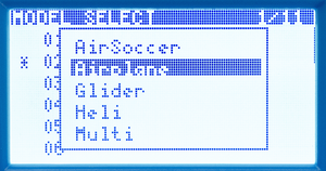 • Create model. When creating a new model, you have AirSoccer, Airplane, Glider, Heli, Multi and Other presets to choose from, each containing a general channel layout. Glider further contains Normal and V-tail configurations. Airplane presets are Normal, Delta and V-tail.