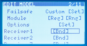 When the receiver is bound, use the ENTER button to open the receiver options.
