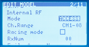 • No pulses - when the signal is lost, the receiver does not send a control signal to the rates on any channel. To use this type, select it from the menu and wait 9 seconds for the Fail-safe setting change to take effect.