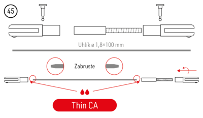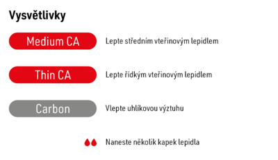 - Lepidla: střední a řídké vteřinové lepidlo, aktivátor pro vteřinové lepidlo, tavné lepidlo.