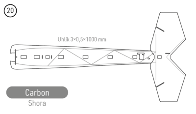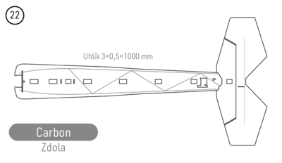 | Uhlíková pásnice | 5 | Uhlík | 3×0,5×1000 mm | 20, 22 |