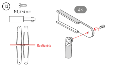 | Šroub kulového čepu | 8 | Ocel | Šroub M1,5×5 mm | 9, 39 |